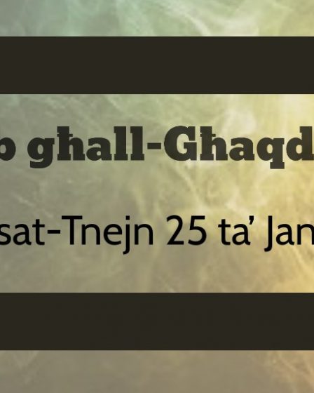 Min‑nhar it‑Tnejn, 18 ta’ Jannar 2021, l‑Insara kollha madwar id‑dinja se jiċċelebraw il‑Ġimgħa ta’ Talb għall‑Għaqda fost l‑Insara, li tintemm it‑Tnejn, 25 ta’ Jannar. Matul din il‑ġimgħa l‑Knejjes Insara differenti jingħaqdu għal talb ekumeniku, bit‑tema għal din is‑sena tkun: “Ibqgħu fl‑imħabba tiegħi u tagħmlu ħafna frott” (ara Ġw 15:5‑9). Dan huwa kliem mill‑Evanġelju skont San …